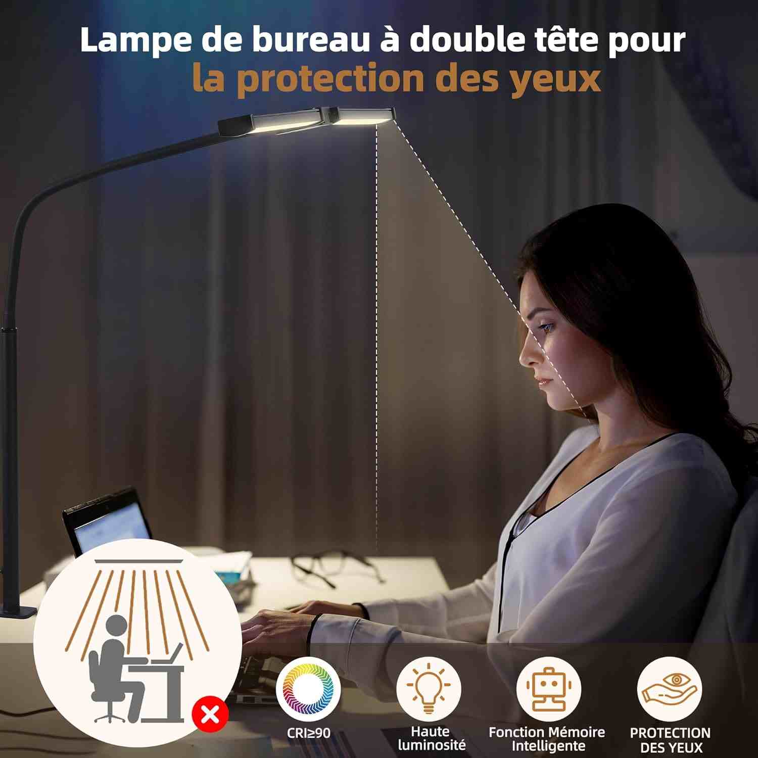 La conception à double tête et le col de cygne 360° de cette lampe de bureau permettent un éclairage large et précis.
